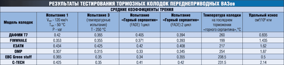 Поэтому ничего удивительного в том, что колодки показали невысокий коэффициент трения на отдельных торможениях со скорости 120 км/ч, не было. Уложились в вазовский норматив — хорошо, уложились с небольшим запасом — еще лучше, а итоговая средняя величина коэффициента сцепления на этом этапе составила 0,35.
