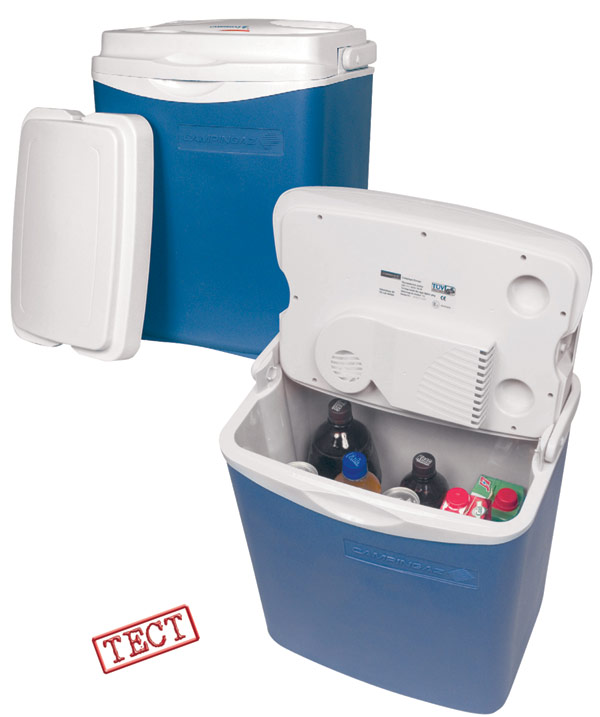 ОСОБЕННОСТИ: внешний вид автомобильного холодильника CAMPINGAZ POWERBOX 28L говорит о том, что данная модель принадлежит к классическим холодильникам-подогревателям. Термоэлектрический элемент и его вечный спутник вентилятор нашли свое законное место на верхней крышке, на которой также «приютились» два подстаканника. Необходимо обратить внимание на то, что в комплект поставки входит вторая крышка, выполненная из теплоизоляционного материала, это дает возможность использовать холодильник как термоконтейнер. Перемещение холодильника в пространстве осуществляется с помощью ручки, которая параллельно фиксирует крышку от нежелательных передвижений.