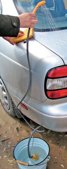 Насадку типа «душ» при желании можно отвинтить, если необходима одна мощная струя. Также возможно навинчивать и другие насадки. В качестве емкости для воды можно использовать все что угодно, например, ведро, таз, канистру и т.п. При этом в емкость с водой надо положить насос, подключить мойку к прикуривателю, и можно приступать к делу. Насос оснащен фильтром для воды, который препятствует засорению и проникновению грязи и песка. Благодаря этому напор воды не будет снижаться со временем, что особенно важно при использовании не очень чистой воды.