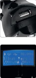 По центру FM модулятора (трансмиттера) Digma ESM 200C расположен весьма информативный ЖК-дисплей. На нем одновременно отображаются время звучания трека, режим воспроизведения, частота передатчика, название файла, источник данных, номер дорожки и общее количество файлов. Экран подсвечивается очень приятным голубым цветом, на котором белыми буквами отображается вся информация. Проблема заключается в том, что дисплей совсем маленький для такого большого количества информации. Из-за этого у водителя нет возможности прочитать, что там написано, поскольку для этого необходимо всматриваться в дисплей. Также небольшим минусом является то, что экран все очень хорошо отсвечивает, что затрудняет восприятие.