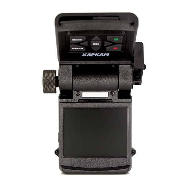 По своей форме видеорегистратор Carcam (КАРКАМ) Q5 напоминает небольшую «книжку», или вернее даже сказать «блокнот», с внешней створки которого располагается объектив видеокамеры, а с внутренней – дисплей. При этом, эти две составляющие части соединены друг с другом при помощи металлического стержня, на конце которого имеется специальная круглая ручка служащая для фиксации положения наружной панели.