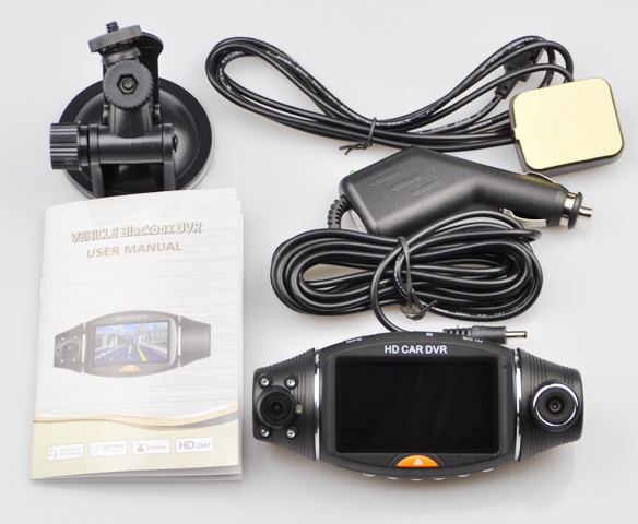 На лицевой панели видеорегистратора находится 2,7 дюймовый жидкокристаллический дисплей, а также довольно большая кнопка предназначенная для включения устройства. С правой и левой сторон корпуса прибора расположены объективы видеокамер, которые благодаря шарнирному механизму можно поворачивать по горизонтальной оси, тем самым изменяя направление камер.