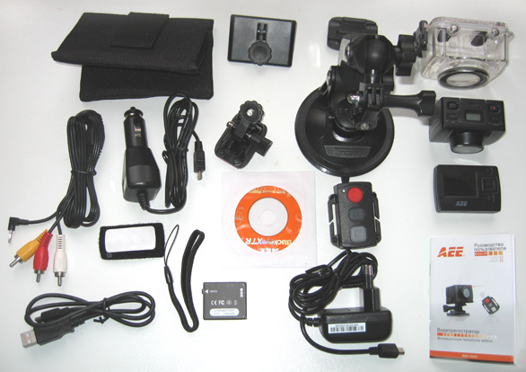 На первый взгляд нам показалось, что комплектация модели AEE Blackeye XTR находится более чем «на уровне» в сравнении с другими участниками обзора. Однако при ближайшем рассмотрении, за обилием креплений, обнаружилось отсутствие держателя для велосипеда или мотоцикла. Не зря на упаковке регистратора запечатлена пара парашютистов, а не велосипедист – как в случае с Highscreen Black Box Outdoor. С одной стороны, велосипедный кронштейн есть практически стандартный пункт комплектации экшн-регистраторов. С другой стороны, если сфера мото-вело пользователя никоим образом не интересует – потеря невелика.