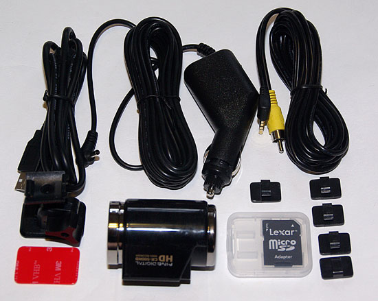 В комплекте с регистратором идут кабели для подключения внешнего дисплея (mini-jack – RCA (тюльпан)), компьютера (miniUSB), а также адаптер питания. Для крепления кабеля питания вдоль лобового стекла прилагаются несколько держателей. Также у пользователя есть возможность докупить к FineVu CR-500HD дополнительные аксессуары: видеокабель, адаптер питания для постоянного подключения к бортовой сети и внешний GPS-приемник. Но самым интересным, по нашему мнению, является поляризационный светофильтр, использование которого позволит избавиться от бликов и значительно улучшить качество видеозаписи при небольших затратах.
