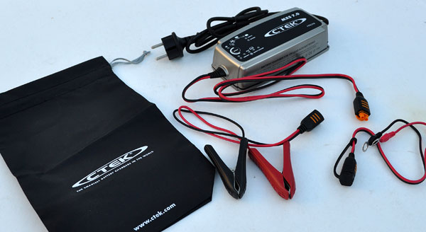 Импульсное зарядное устройство CTEK MXS 7.0 представляет собой небольшую пластиковую коробочку размером 188х88х48 мм. Из меньших торцов выходят провода: из одного — для подключения к сети 220 В, с вилкой на конце, длиной 1,35 метра; из другого — провод с разъемом, к которому можно подключить провода с «крокодилами», с клеммами под болты, со штекером в прикуриватель или с индикатором состояния аккумулятора. Причем в комплекте идут только два первых концевика. Длина второго провода (включая длину разъема) 110 см. Входы проводов в корпус прибора защищены пластиковыми муфтами, которые предохраняют провода от перелома. На корпусе предусмотрены два крепежных отверстия.