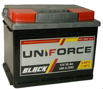 Автомобильный аккумулятор Uniforce BLACK 60 Ач (6СТ-60) рекомендуется для автомобилей стандартной мощности и энергопотребления. Популярная марка среди владельцев автомобилей российского производства.