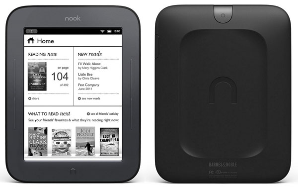 Ридер Barnes NOOK выполнен в сверх тонком пластиковом корпусе с довольно сильно закругленными углами. При этом самой интересной особенностью устройства, с точки зрения дизайна, является задняя панель корпуса. Изготовлена она из высококачественного прорезиненного материала и имеет специальные уступы, которые позволяют более удобно и надежно удерживать ридер в руках. К отличительным особенностям следует отнести также и 6-ти дюймовый дисплей, выполненный по технологии e-ink Pearl, который дополнен сенсорным интерфейсом. Благодаря такому решению инженерам удалось практически полностью отказаться от механических клавиш, существенно упростить интерфейс и уменьшить габаритные размеры устройства. Единственный минус этого дисплея состоит в том, что построен он на черно/белой матрице.