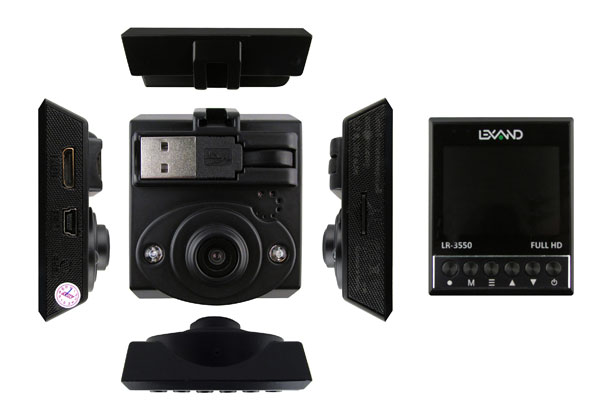 Модель позиционируется как недорогой вариант Full HD регистратора, однако откровенным бюджетником Lexand LR-3550 не выглядит. Дизайн устройства можно назвать необычным: скошенные боковые грани, миниатюрные габариты, 55 х 64 х 19 мм, вес всего 45 граммов. Штекер USB прячется в нише прямо над камерой. Довольно удобное решение для тех, кто часто подключает регистратор к компьютеру – не придется постоянно искать кабель, чтобы перекинуть видео. Кстати, подобной находки мы не встречали в других регистраторах.