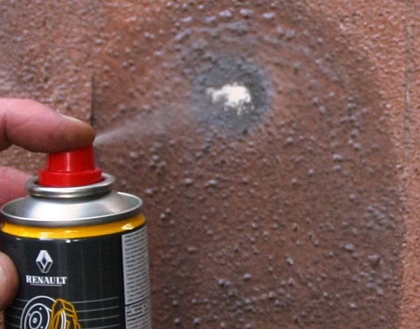 Встряхнуть баллон и распылять состав с расстояния 20–30 см. Дать средству стечь или высохнуть. При необходимости простереть детали тряпкой.