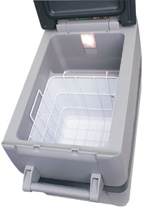 ОСОБЕННОСТИ: начнем с главного по некоторым параметрам автомобильный компрессорный холодильник WAECO CoolFreeze CF-40 несколько выигрывает у своего прямого конкурента — ENGEL MT35F-G3. WAECO немного компактнее, имеет больший внутренний объем камеры и обладает меньшим весом. Корпус автомобильного холодильника выполнен из пластика, следовательно, имеет относительно небольшой вес. Компрессорный агрегат отличается очень компактными размерами, он интегрирован в нижнюю часть корпуса. Внутренний объем холодильной камеры легко трансформировать при помощи входящего в комплект металлического гриля, который повторяет форму холодильной камеры, и специальной перегородки. Трудно переоценить наличие подсветки камеры холодильника.